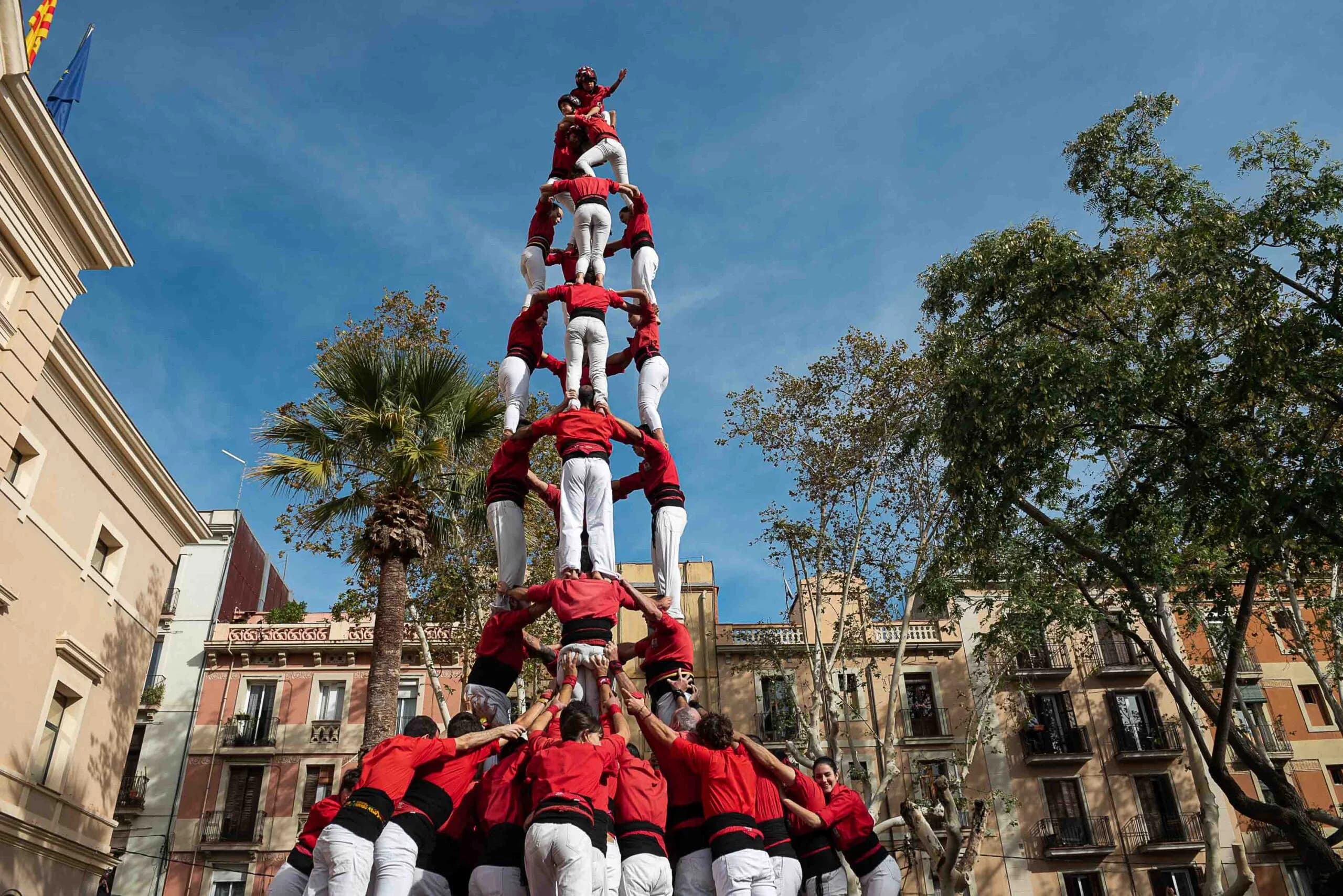 Després d’un cercavila des del local fins a la plaça amb els Castellers de Sabadell i els Castellers de Castelldefels, entràvem a plaça amb un pilar de 4 caminant, per tot seguit començar la diada amb el 4 de 9 amb folre, que va pujar al segon peu, potser una mica més treballat que a Gràcia a nivell de segons però gràcies a l’alt ritme del castell això va facilitar completar-lo de nou, el segon de l’any, el vint-i-quatrè de la Colla i el sisè assolit en aquesta plaça. A la segona ronda un nou 2 de 8 amb folre, castell que va pujar al primer peu amb bones mides però es va complicar poc abans de carregar, tot i això no va impedir poder-hi fer l’aleta però tot seguit es va acabar trencant quedant en tant sols carregat. Per finalitzar les rondes de castells el desè 3 de 8, el qual ha anat agafant rodatge i que cada vegada s’ha anat resolent amb millor factura. La ronda de pilars va tenir vàries rondes, primer un vano de 5 on els pilars de 4 varen ser porters al balcó de la Seu del Districte de Sant Martí, tot seguit deu pilars de 4 simultanis per finalitzar amb un pilar de 4 amb folre format per la canalla de la Colla.