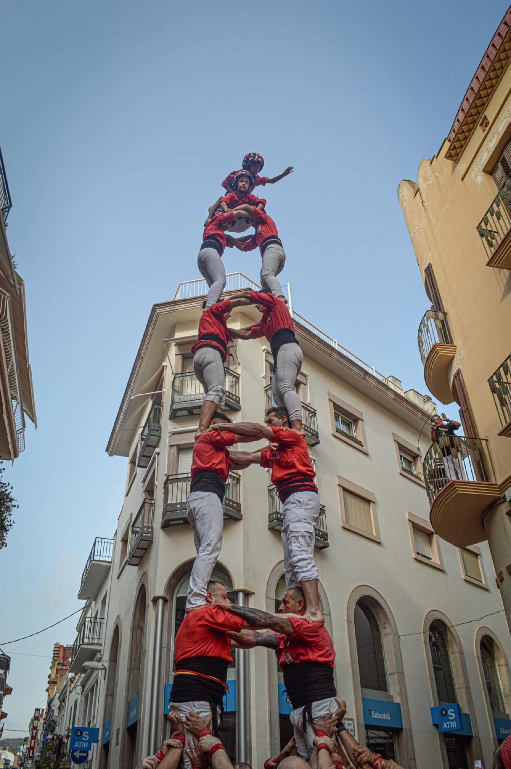 Després d’una cercavila, entràvem a la Plaça del Cap de la Vila, on no actuàvem des del 2003, amb un pilar de 4 caminant. Sent segons en actuar, a la primera ronda alçàvem el millor castell del dia, el 2 de 7, ja el tercer