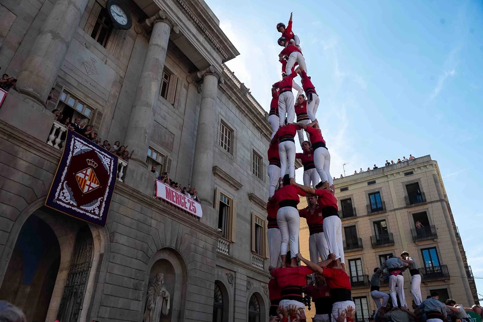 Aquest dimecres 24 de setembre, dia de la Mercè, la Colla ha participat de la primera de les dues diades castelleres de la Mercè a la Plaça de Sant Jaume on hi hem entrat amb el pilar de 4 caminant passades les 13h després d’una cercavila iniciat a la Plaça Reial.