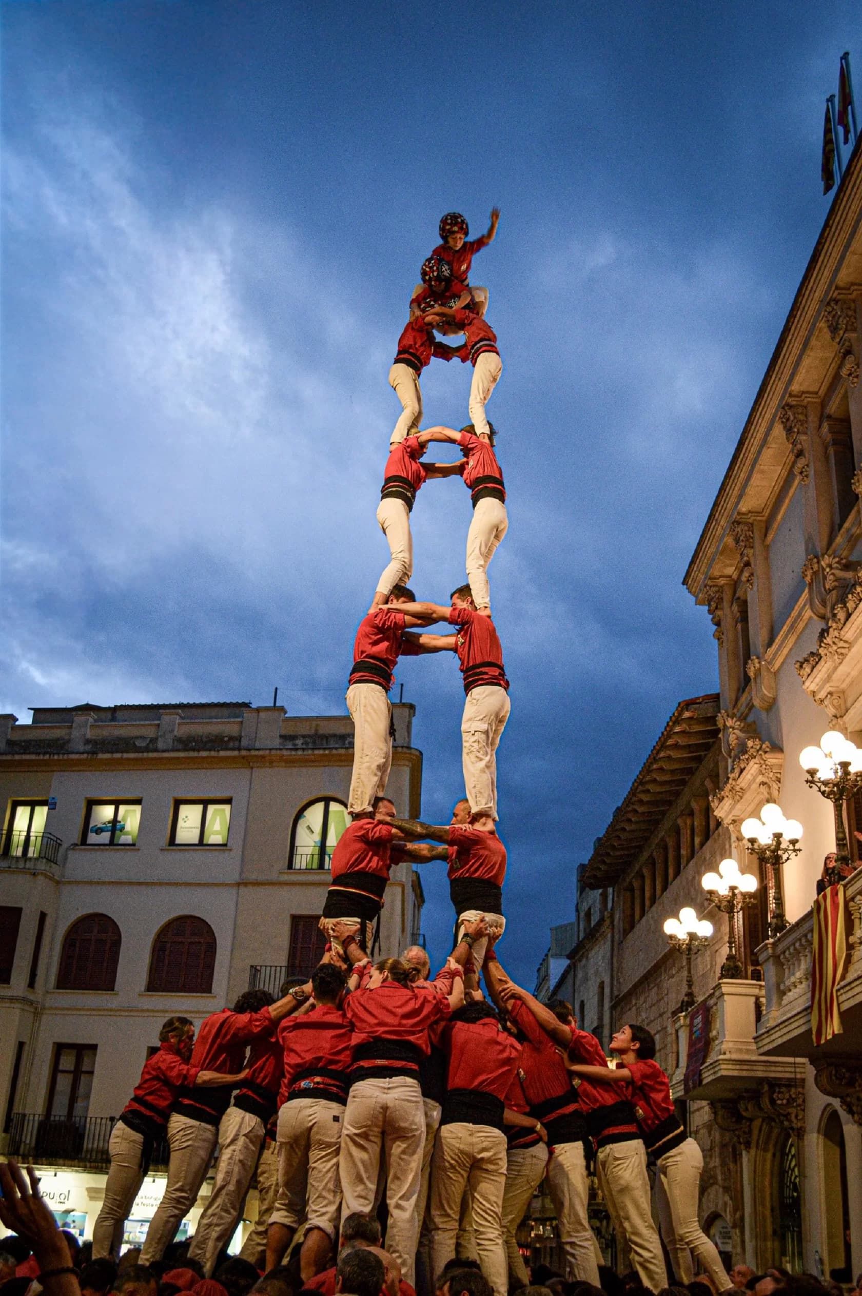 A la segona ronda seria el torn del 2 de 8 amb folre, el qual pujaria amb determinació, es carregaria amb solvència i la descarregada es controlaria en tot moment, sent el tercer de l’any i el segon consecutiu. Finalment, les rondes de castells les tancaríem amb el 3 de 8, castell que va agafant solvència a mesura que l’estem portant a plaça, sent el quart amb el tronc estrenat a la Festa Major de les Corts, i el vuitè de l’any. Finalment a la ronda de pilars un vano de 5 posaria el punt i final de l’actuació de la Colla.