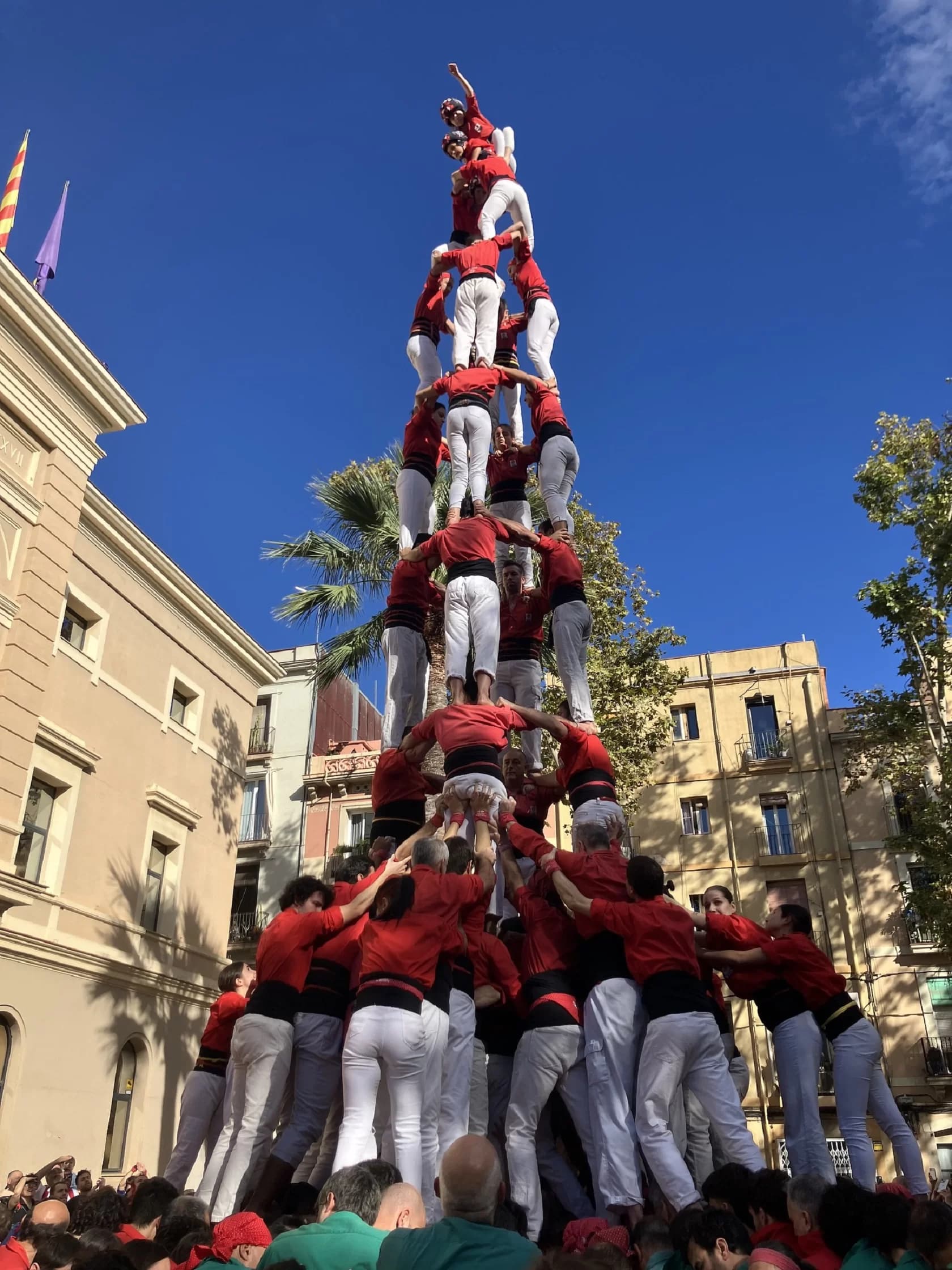 Després d’un cercavila des del local fins a la plaça per part de la Colla i les dues colles convidades, Castellers de Sabadell i Castellers de la Vila de Gràcia, entràvem a plaça amb un pilar de 4 caminant, per tot seguit començar la diada a nivell de les rondes de castells amb el 4 de 9 amb folre, el qual pujaria amunt al primer peu i que es carregaria amb suficiència, però a la descarregada es perdria les mides i a la sortida dels dosos el castell es trencaria en una caiguda que afectaria principalment a components del pis de quarts de castells de vuit.